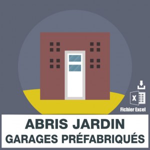 The 1.164 email addresses for the sale and installation of garden sheds and prefabricated garages are provided on an XLS file with the columns NAME - ADDRESS - CP - CITY - TEL - EMAIL