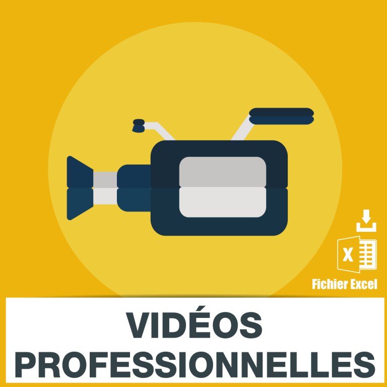 The 1.367 e-mail addresses of professional videos and the e-mail addresses of advertising films or e-mail addresses of educational films are provided on an Excel file with the columns NAME - ADDRESS - CP - CITY - TEL - EMAIL p>