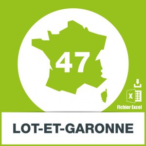 The 16.106 e-mail addresses of all professionals in Lot-et-Garonne (department 47) are provided on an XLS file with the columns NAME - ADDRESS - CP - CITY - TEL - ACTIVITY - EMAIL