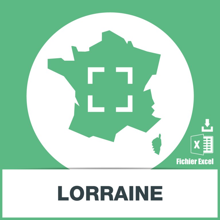The 31.889 e-mail addresses of professionals in the Moselle (department 57) are provided on an XLS file with the columns NAME - ADDRESS - CP - CITY - TEL - ACTIVITY - EMAIL