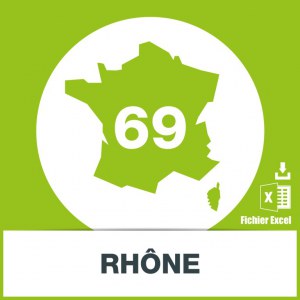 The 92.278 e-mail addresses of professionals in the Rhône (department 69) are provided on an XLS file with the columns NAME - ADDRESS - CP - CITY - TEL - ACTIVITY - EMAIL