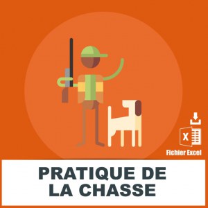 The 292 hunting practice email addresses are provided in an Excel file with the columns NAME - ADDRESS - POSTAL CODE - CITY - TELEPHONE - E-MAIL ADDRESS