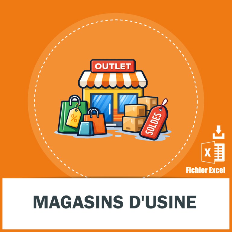 Envoi de la base Adresses emails magasins d'usine sur toute la France métropolitaine dans un fichier excel par email quelques minutes après votre commande, du lundi au vendredi. Il peut y avoir une ou plusieurs adresses e-mails pour la même entreprise.