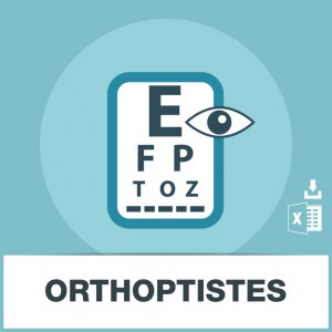 Envoi de la base Adresses e-mails orthoptistes sur toute la France métropolitaine dans un fichier excel par email quelques minutes après votre commande, du lundi au vendredi. Il peut y avoir une ou plusieurs adresses e-mails pour la même entreprise.