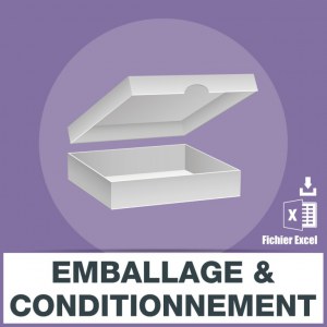Envoi de la base Adresses e-mails emballage conditionnement sur toute la France métropolitaine dans un fichier excel par email quelques minutes après votre commande, du lundi au vendredi. Il peut y avoir une ou plusieurs adresses e-mails pour la même entreprise.